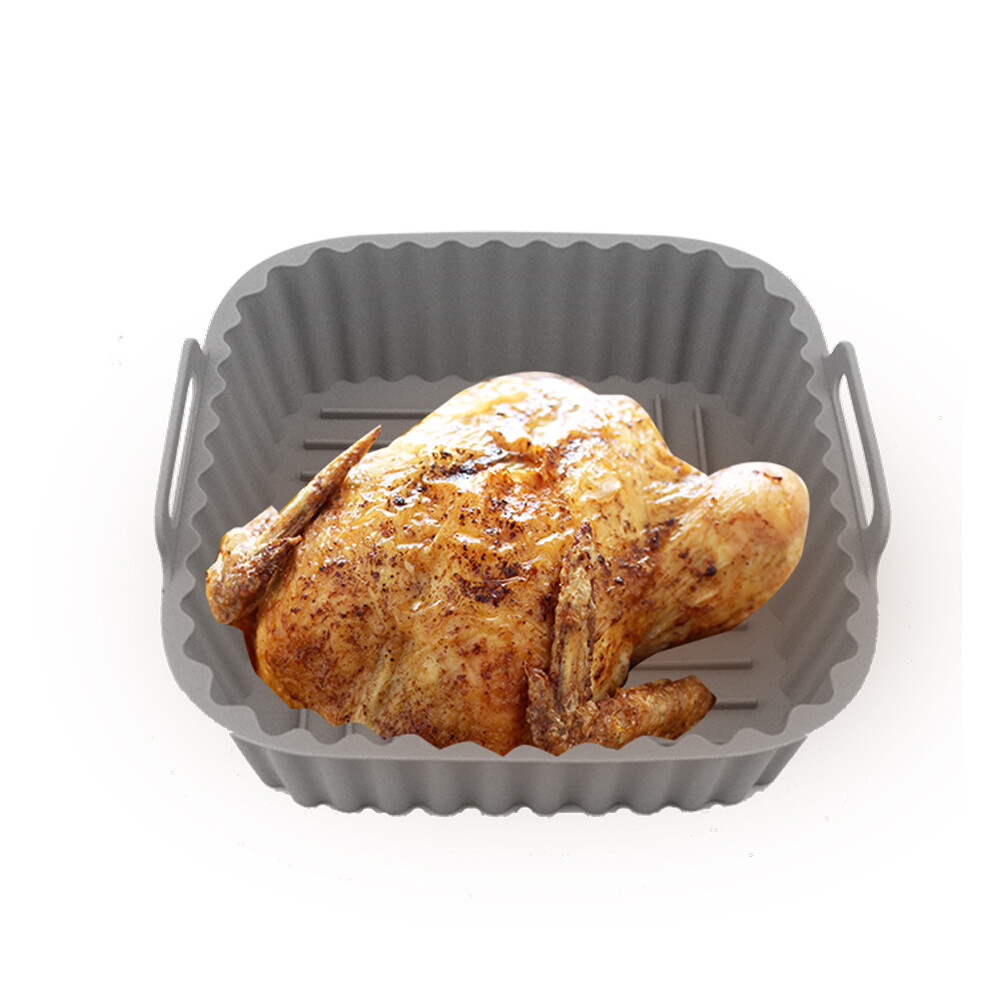 Contenitore in silicone per friggitrice ad aria. Ottimo anche per microonde e forno (max 230°C). Ideale per friggitrici dai 5 ai 7 litri. Lavabile sia a mano che in lavastoviglie.