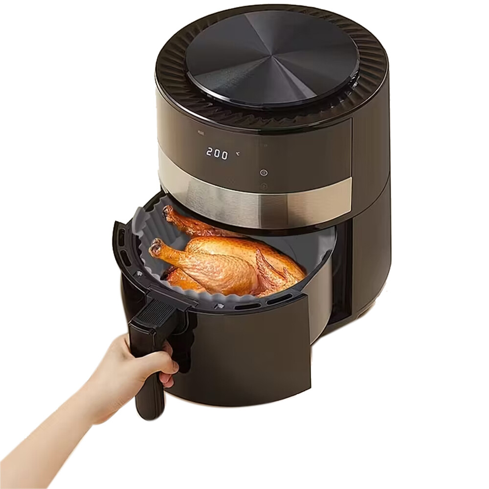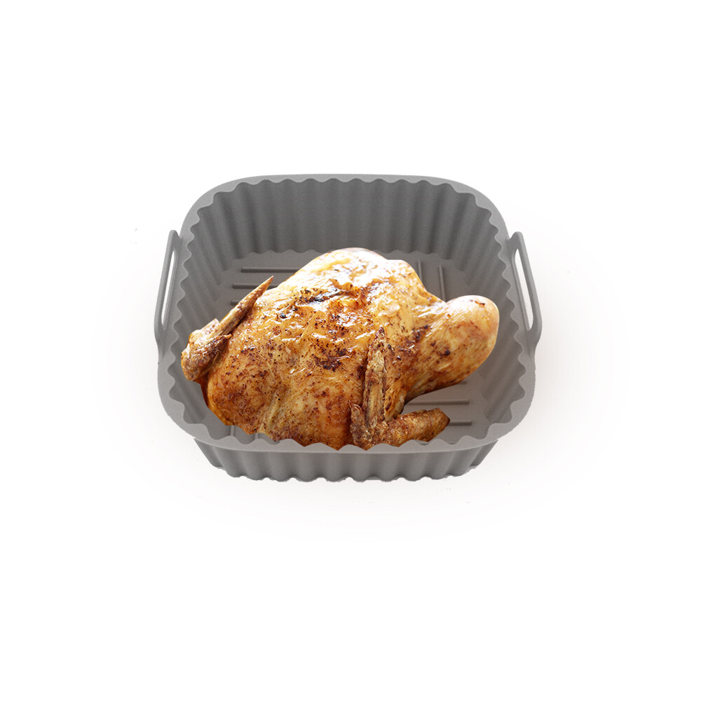 Contenitore in silicone per friggitrice ad aria. Ottimo anche per microonde e forno (max 230°C). Ideale per friggitrici dai 3 ai 5 litri. Lavabile sia a mano che in lavastoviglie.