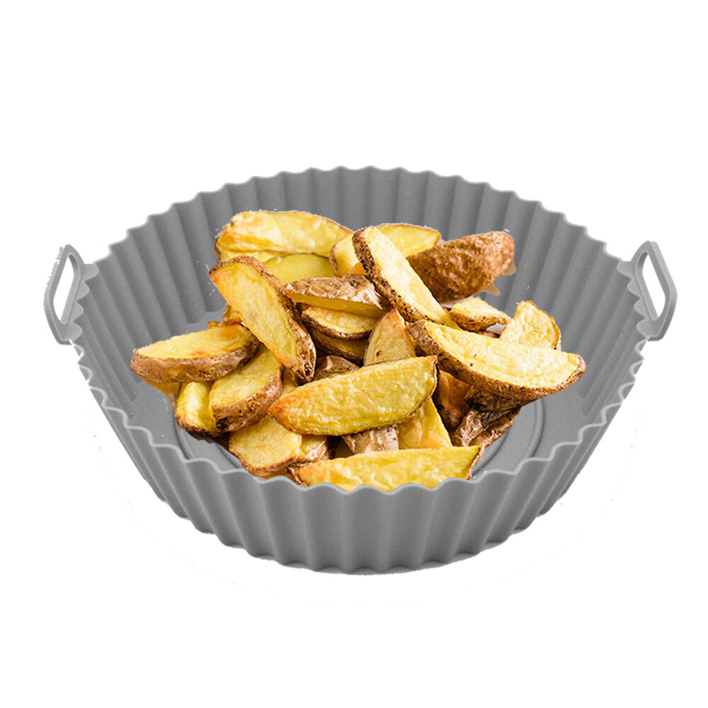 Contenitore in silicone per friggitrice ad aria. Ottimo anche per microonde e forno (max 230°C). Ideale per friggitrici dai 4 ai 6 litri. Lavabile sia a mano che in lavastoviglie.
