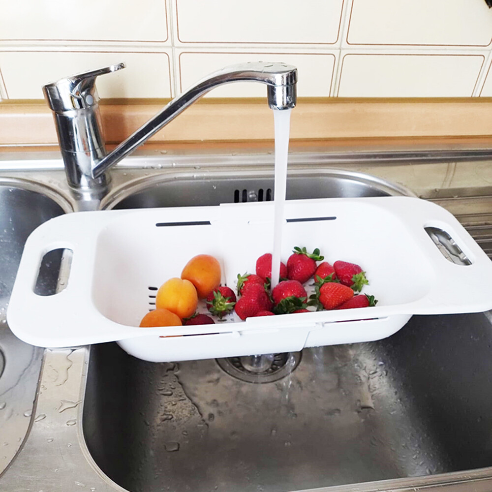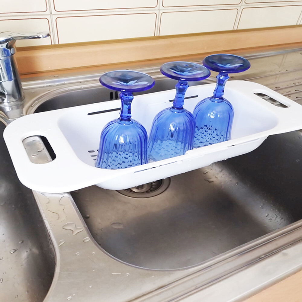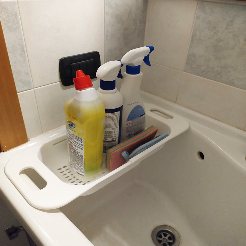 Cesto estendibile realizzato in PP multiuso. Adatto per lavelli, per lavare e scolare. Ottimo alleato in cucina, bagno, lavanderia.