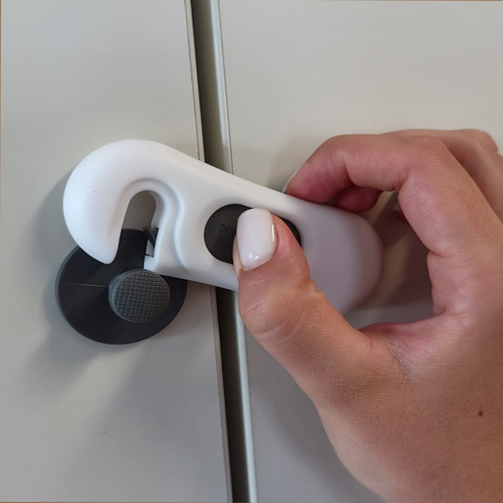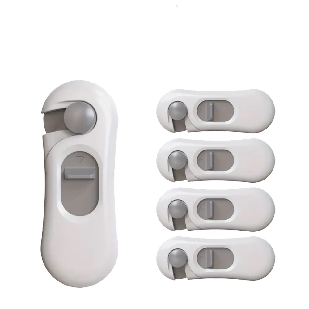 Set di 5 chiusure di sicurezza in ABS per ante e cassetti. Facili da applicare, si applicano con un adesivo.